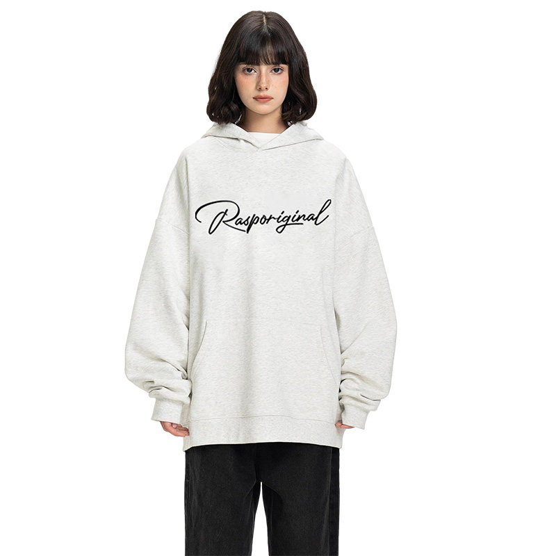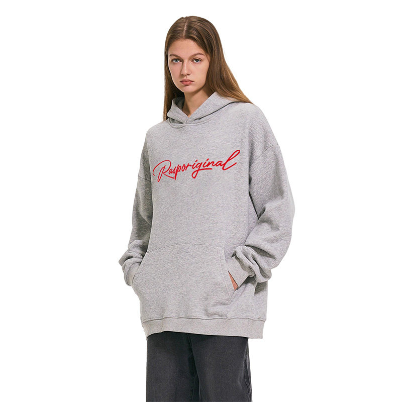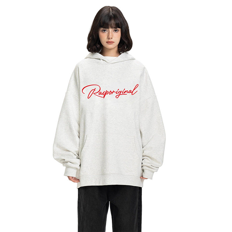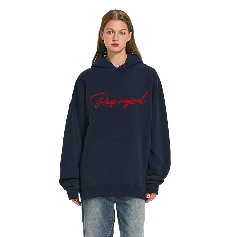 RASP花体LOGO正面印花连帽卫衣秋冬季美式高街情侣长袖上衣帽衫潮
