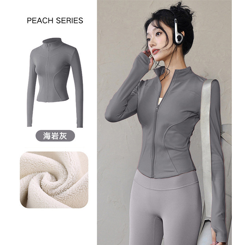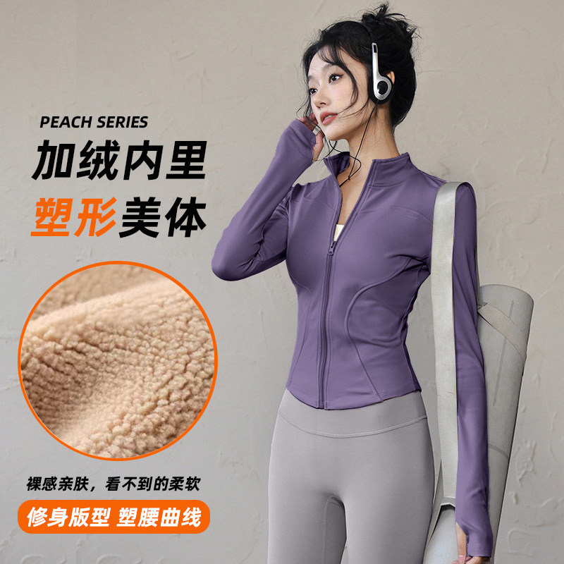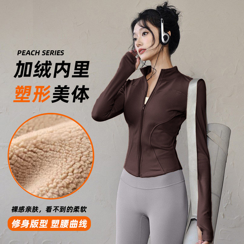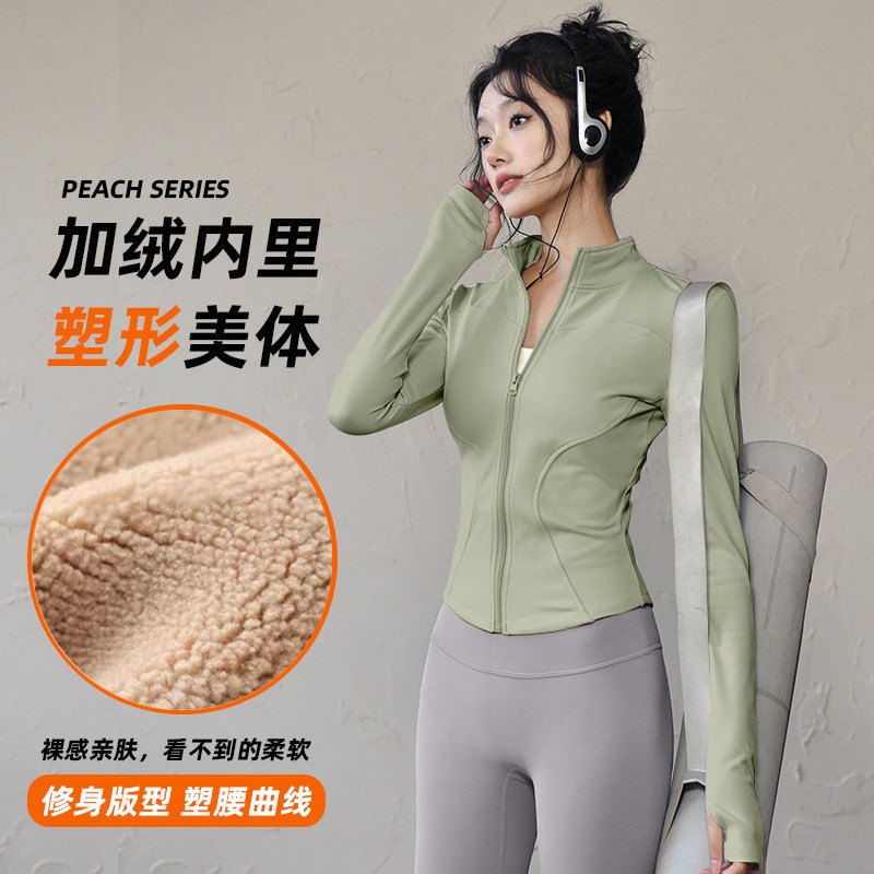 秋冬季显瘦修身保暖加绒外套女立领拉链瑜伽上衣运动夹克健身服