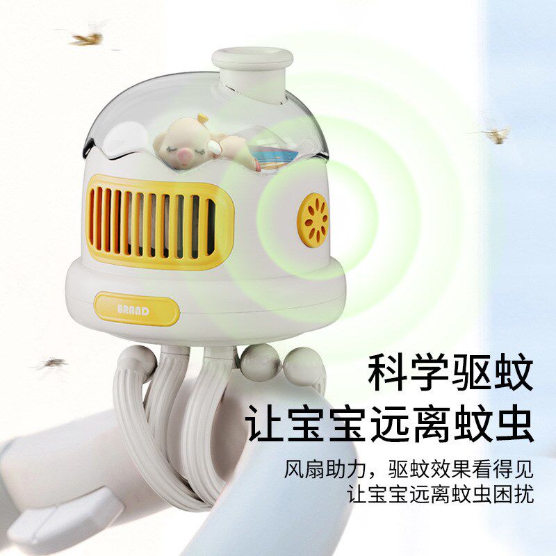 婴儿车风扇宝宝推车小风扇可摇头八爪鱼无叶手持充电夏天降温神器