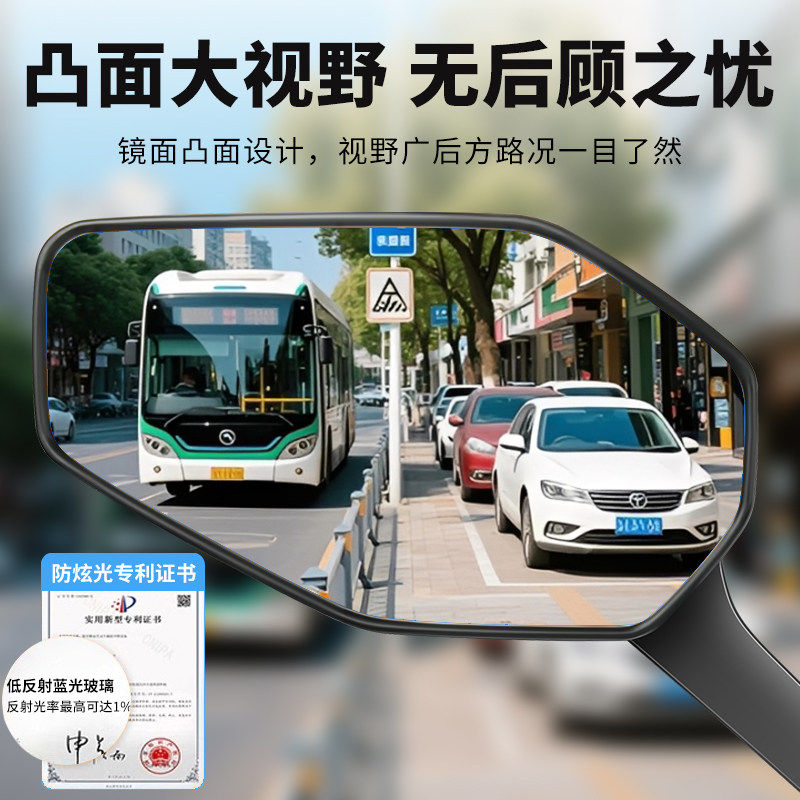 电动自行车后视镜通用电瓶车倒车镜大视野凸面镜电摩踏板车反光镜