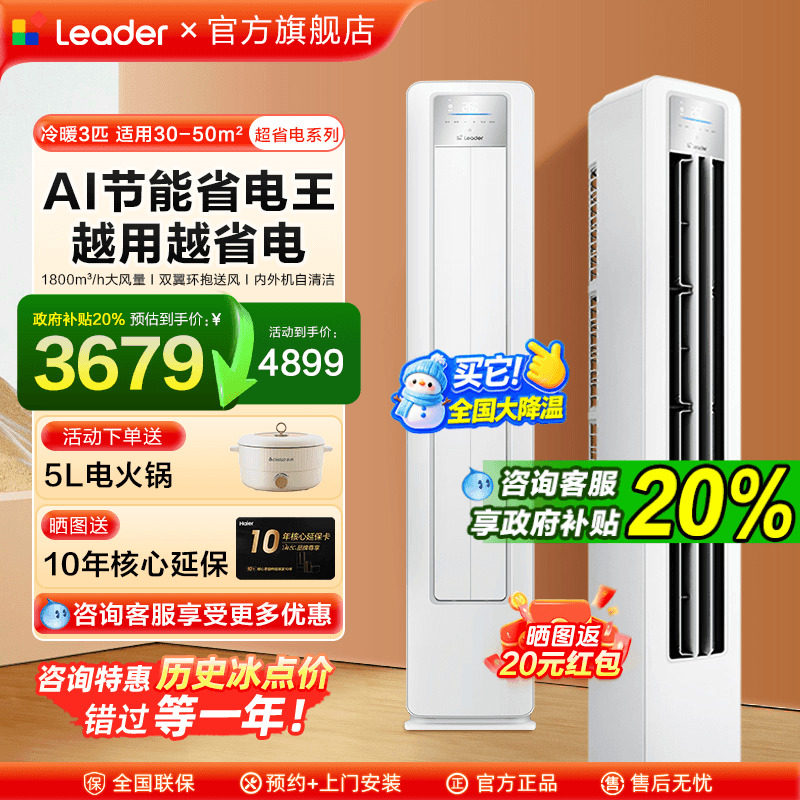海尔空调大3匹Leader柜机2P立式空调客厅一级能效家用LPA旗舰店