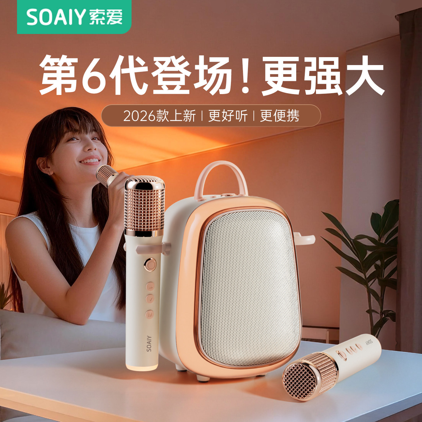 索爱miniktv6家用k歌音响麦克风话筒一体机家庭户外蓝牙唱歌音箱