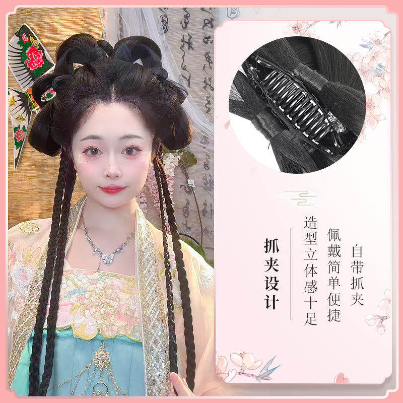 汉服假发古风一体式蝴蝶结抓夹发髻麻花辫假发包古装盘发头饰日常