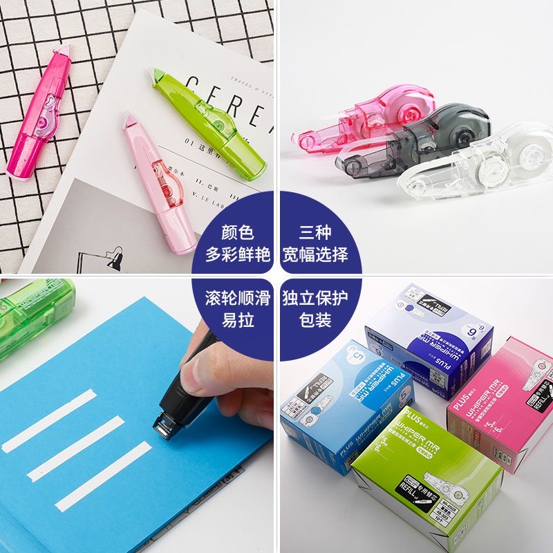 日本plus普乐士修正带替芯WH-625/635/626学生用改正带大容量透明涂改带可替芯10个初中生盒装纠错文具粉紫色