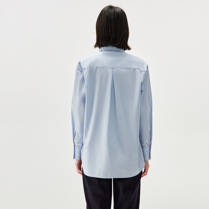 【纯棉】HLA/海澜之家长袖白衬衫秋新款宽松显瘦休闲衬衣外套女装