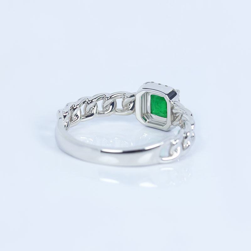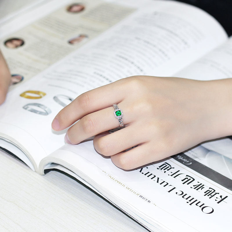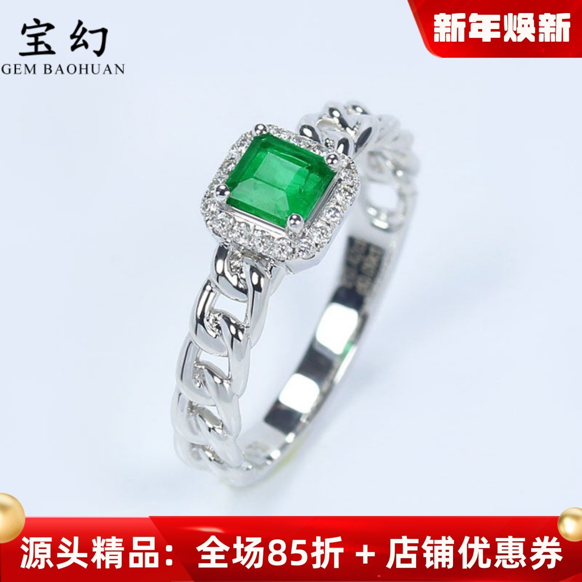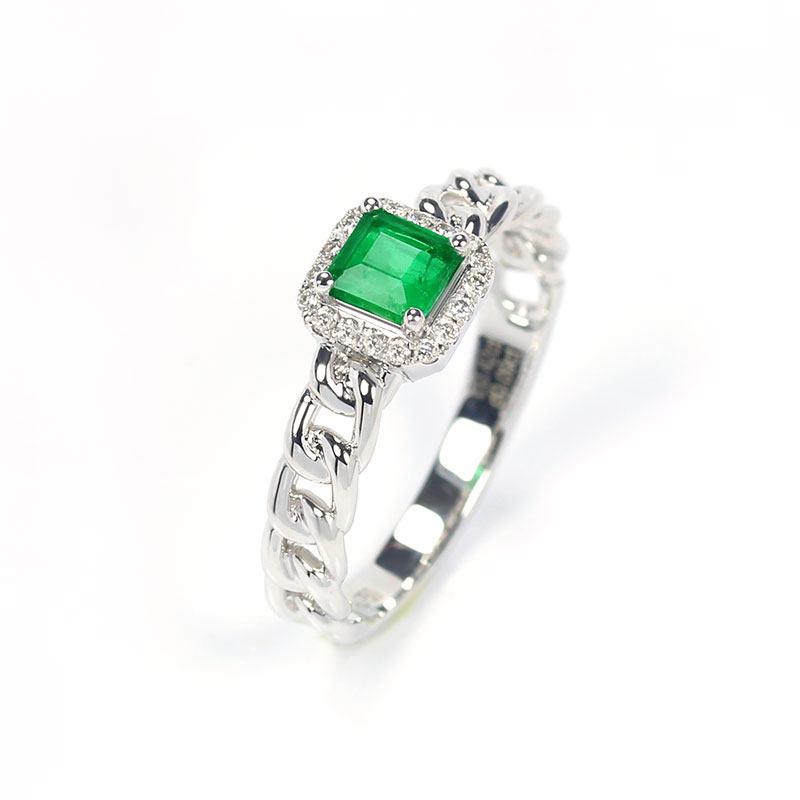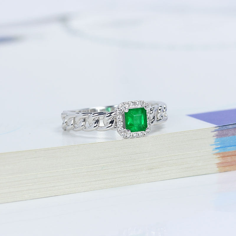 G18K白金赞比亚天然祖母绿戒指 方形绿色宝石镶钻石手饰正品女款