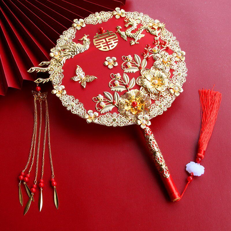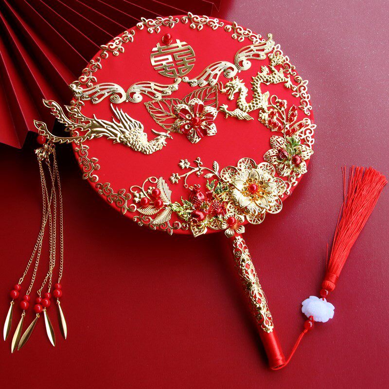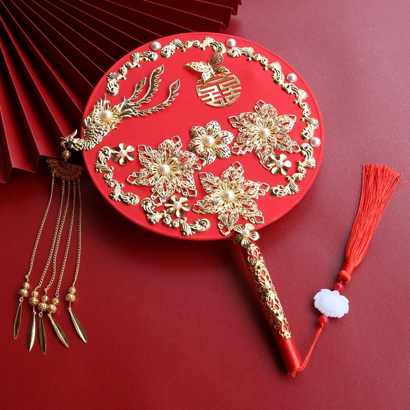 影楼拍照团扇新娘结婚秀禾扇子中式婚礼接亲手捧花喜扇成品流苏扇