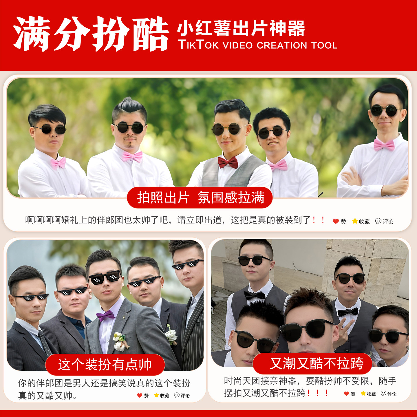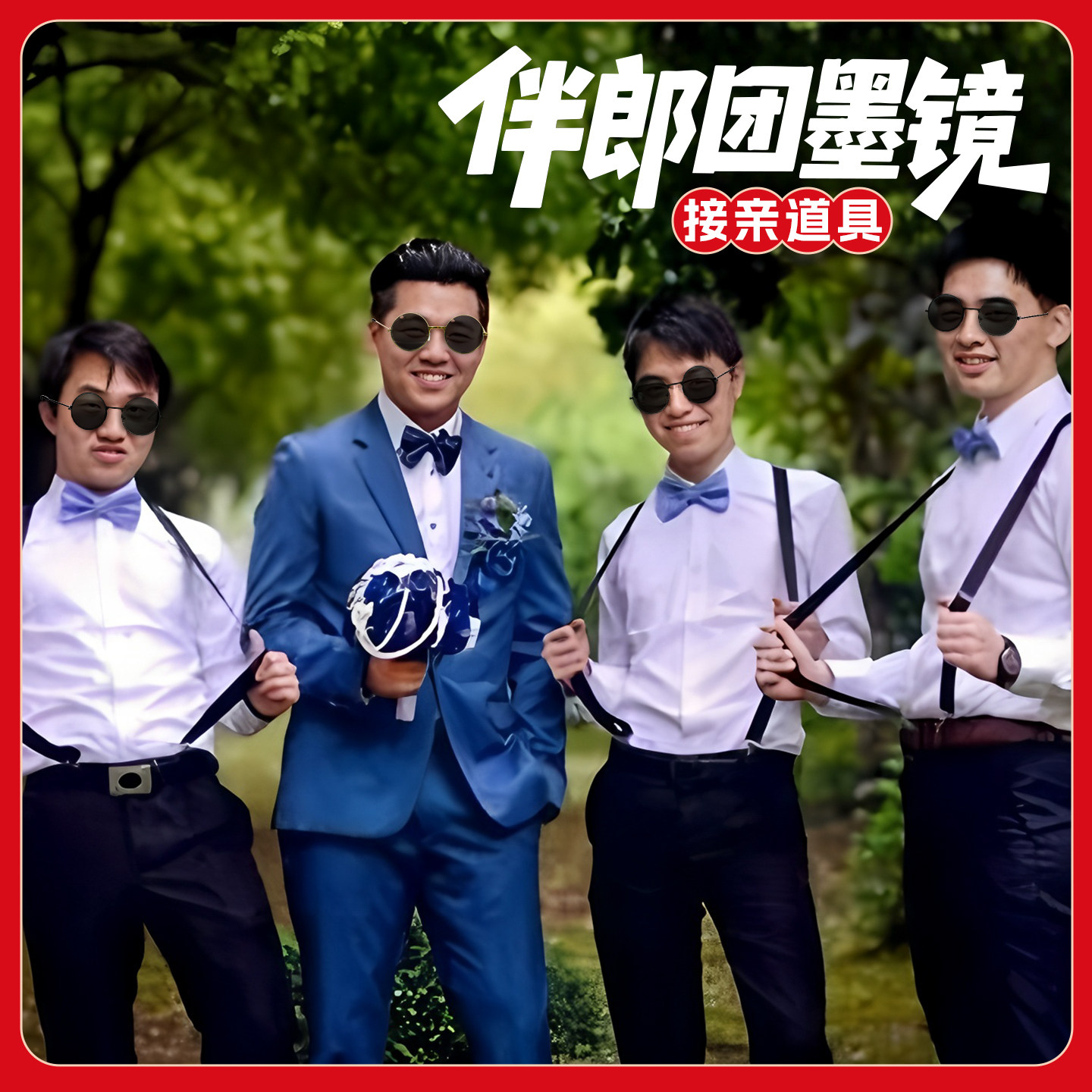 新郎伴郎墨镜婚礼结婚拍照道具伴郎团接亲眼镜男方游戏兄弟团墨镜