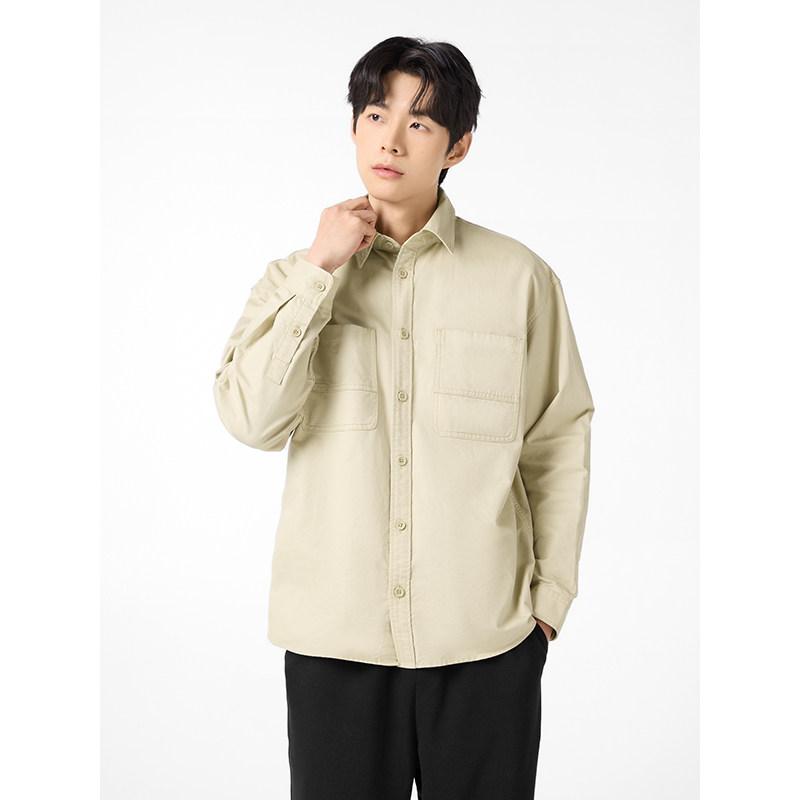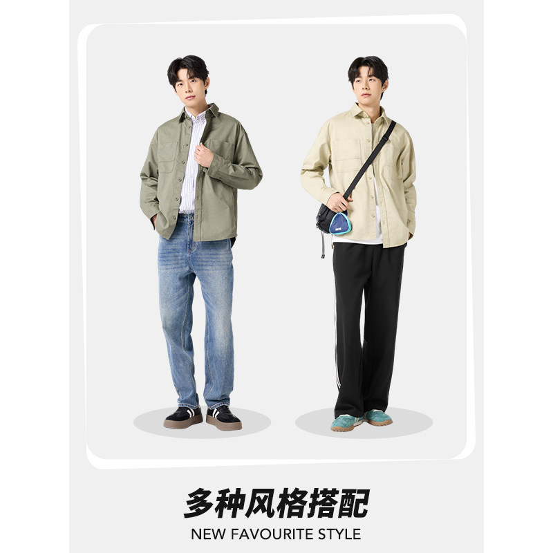 森马长袖衬衫男宽松工装外套情侣款纯色百搭上衣纯棉秋装潮酷流行