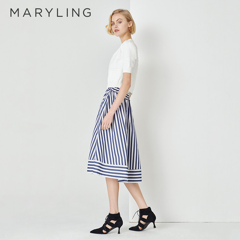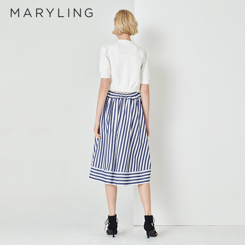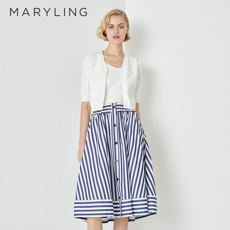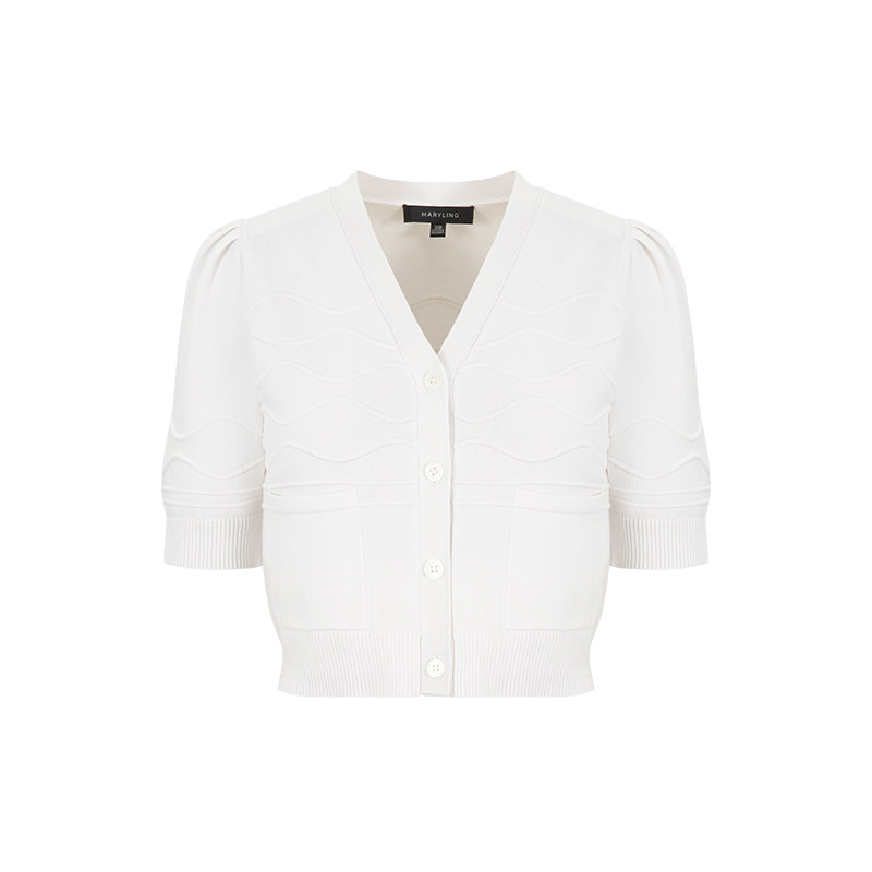 MARYLING玛俪琳春秋新品白色菱格V领针织开衫上衣A1DBW08750