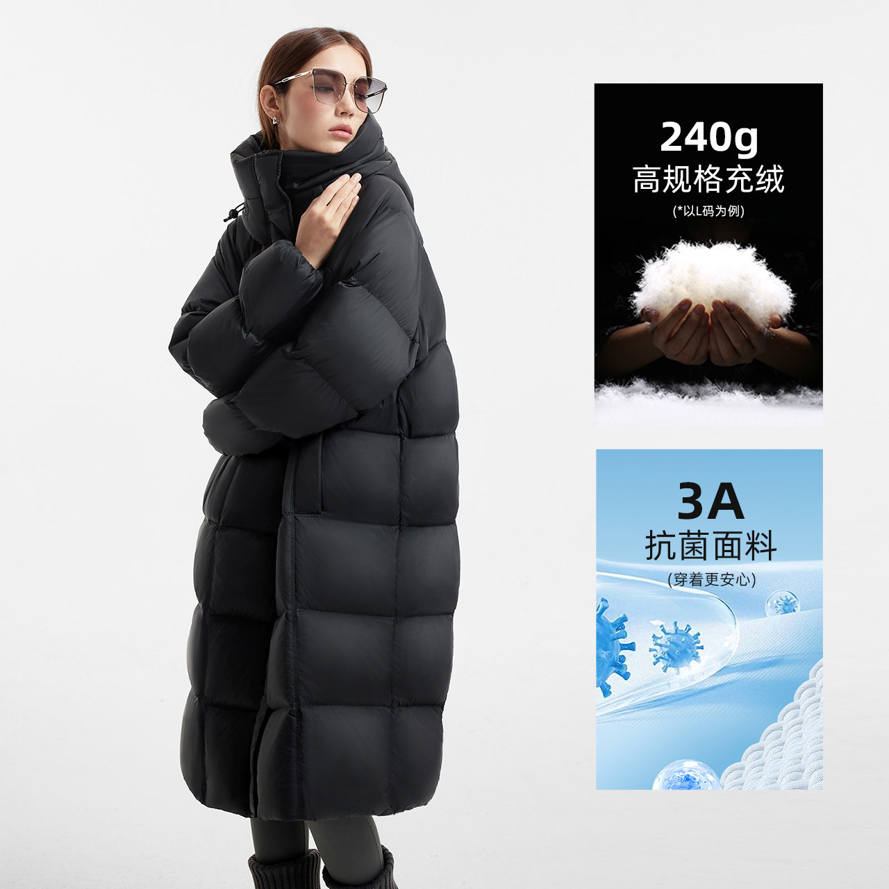 【王一博明星同款】鸭鸭冰壳系列2.0羽绒服男女冬过膝中长款外套J