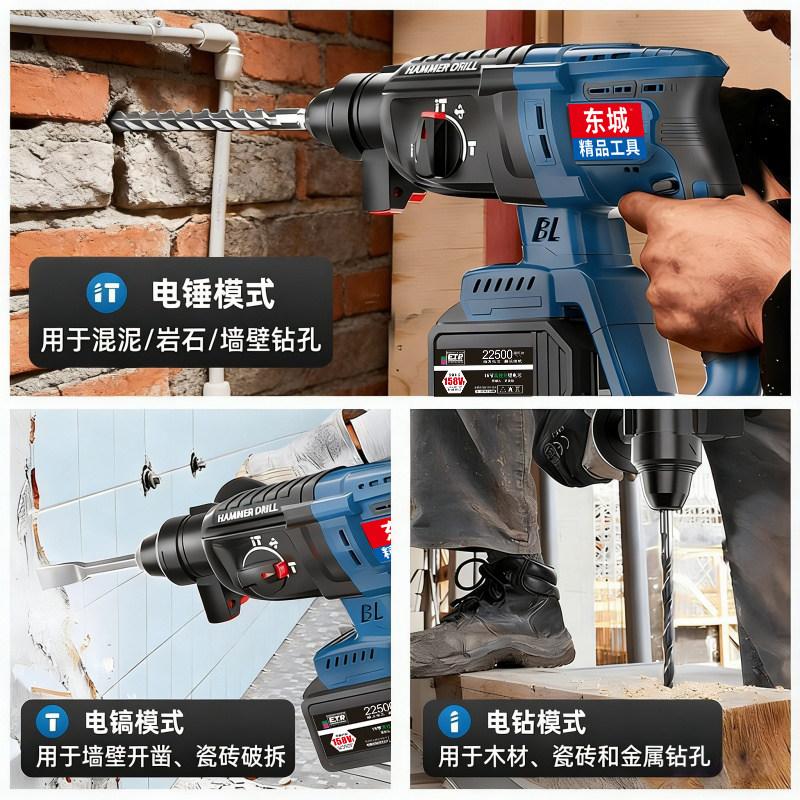 东城电锤电镐三用大功率三电锤无线工业冲击电钻无刷锂电全能套装