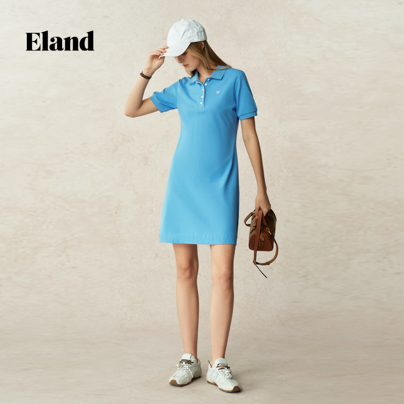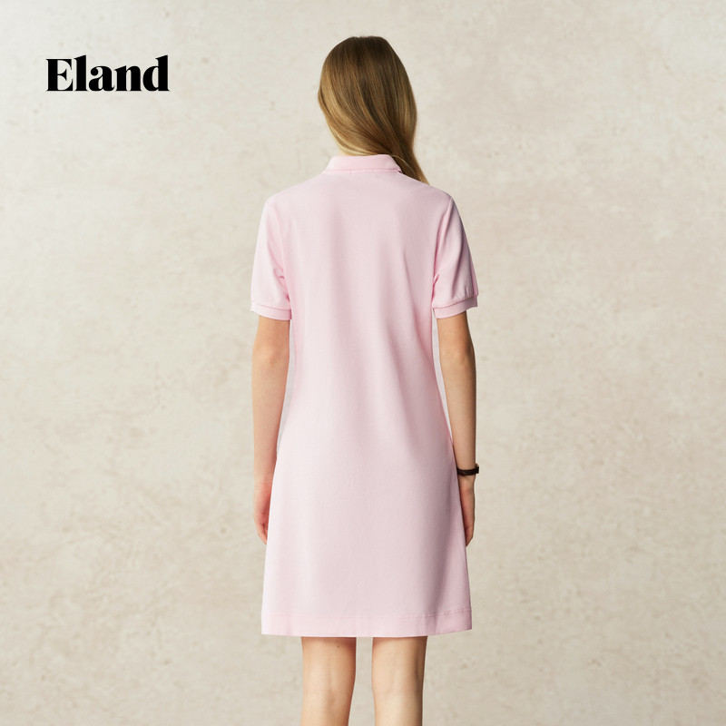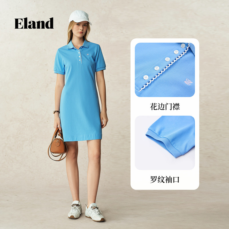 【71%棉】Eland衣恋连衣裙女纯色a字收腰短袖连体裙2025夏季新款