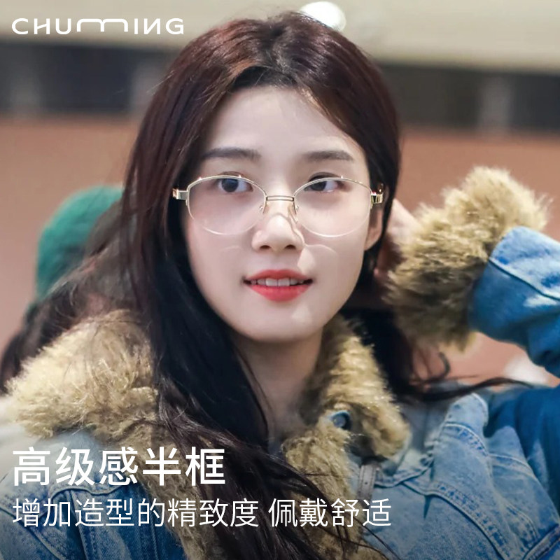 卢昱晓同款半框眼镜女可配度数超轻钛架高智感显脸小防蓝光眼睛架
