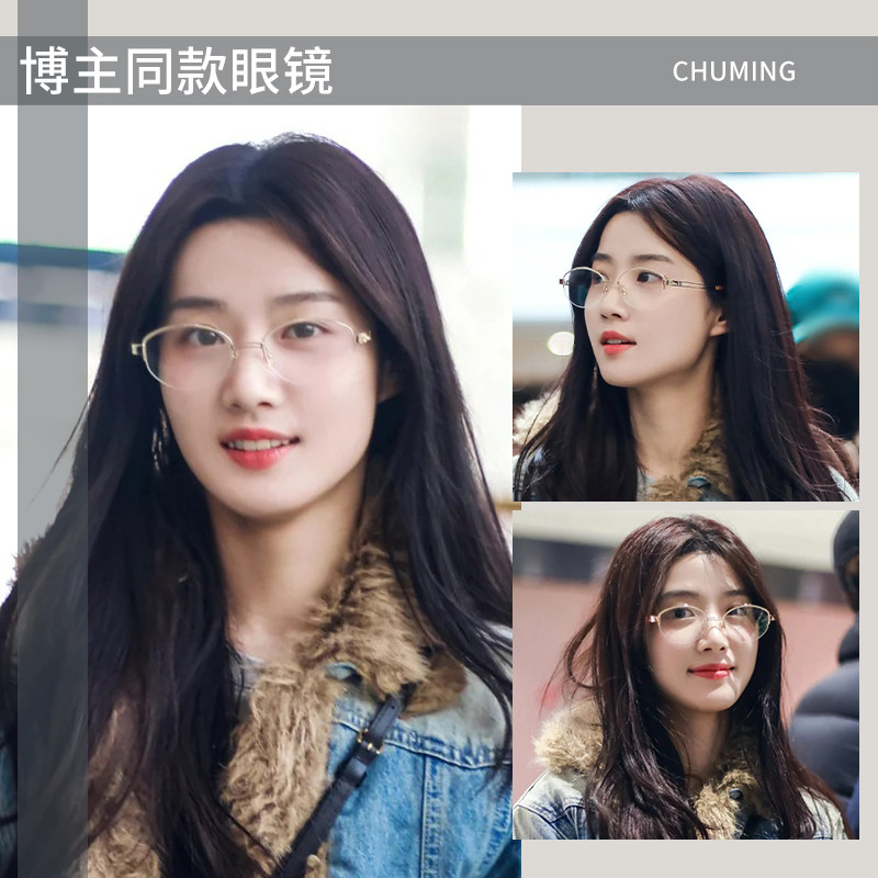 许我耀眼赵露思同款眼镜女许妍无框超轻纯钛仅6g近视可配蔡司镜片