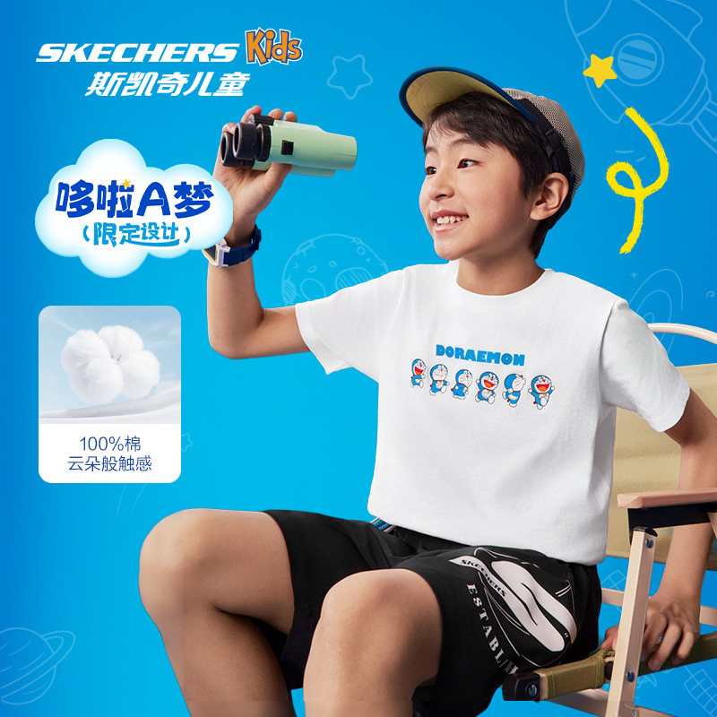 斯凯奇哆啦A梦联名款男女童夏季时尚舒适限定短袖百搭休闲印花T恤