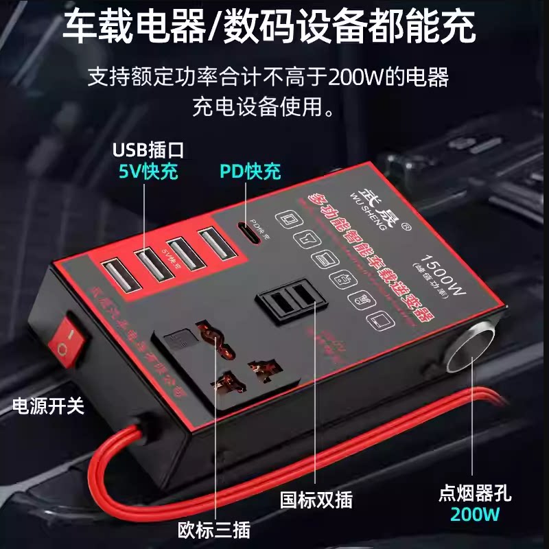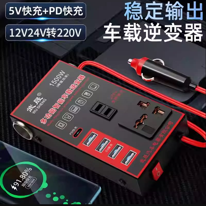 车载逆变器12V24V通用转220V汽车电源插座货车智能充电逆变转换器