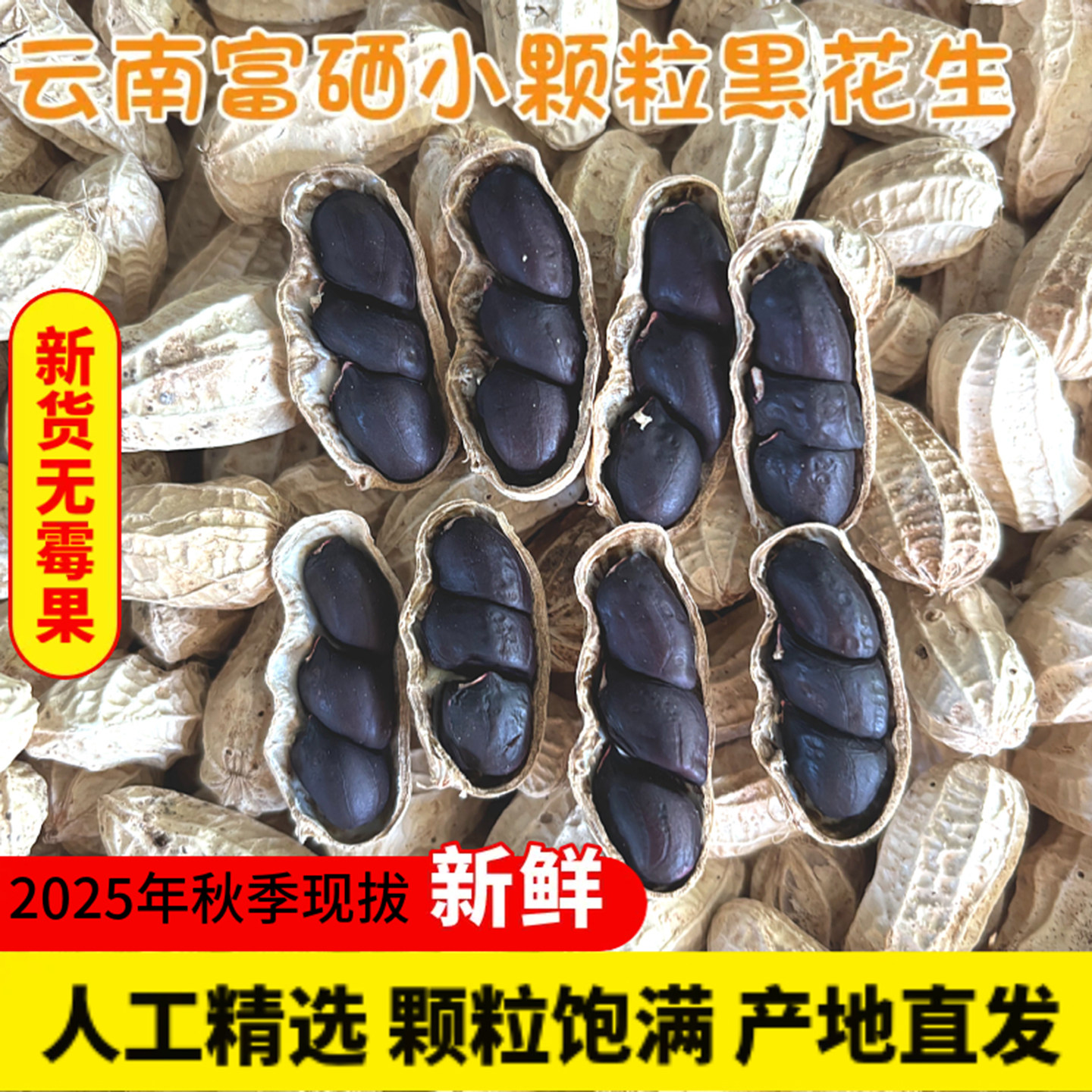 云南哀牢山小粒黑花生带壳晒干富硒黑花生精选新货黑皮花生米