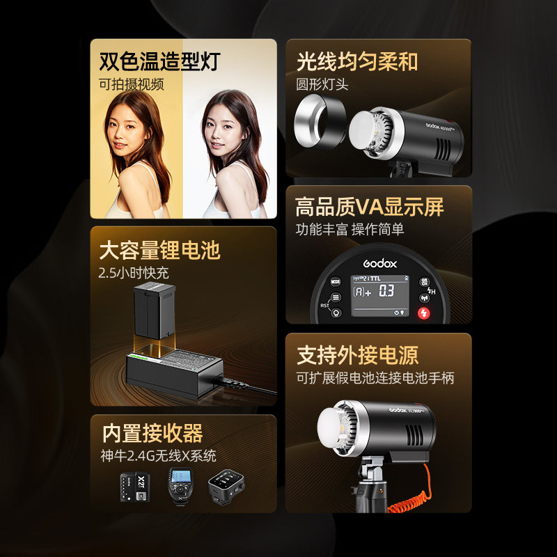 (二代升级)神牛AD300pro II高速同步外拍闪光灯补光灯摄影灯便携300W户外单反补光TTL测光锂电闪光室外打光灯