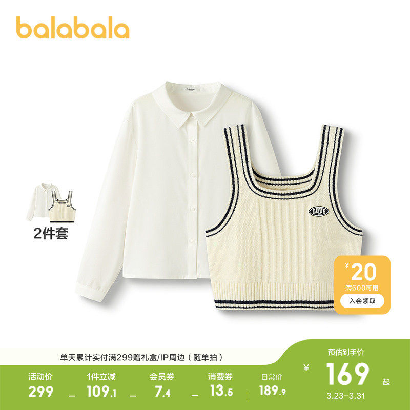 巴拉巴拉童装女童衬衫儿童长袖2026休闲春凉感马甲两件套时尚潮酷