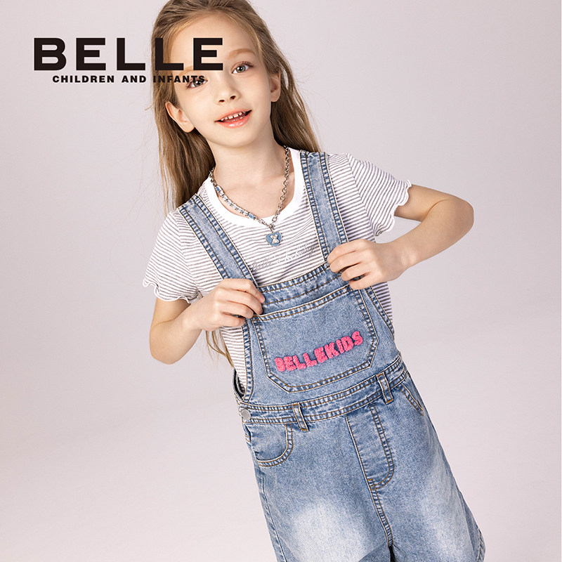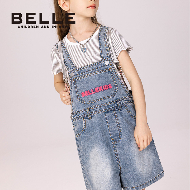 百丽童装女童牛仔背带裙2026春季新款女孩休闲背带裤中大童连身裤