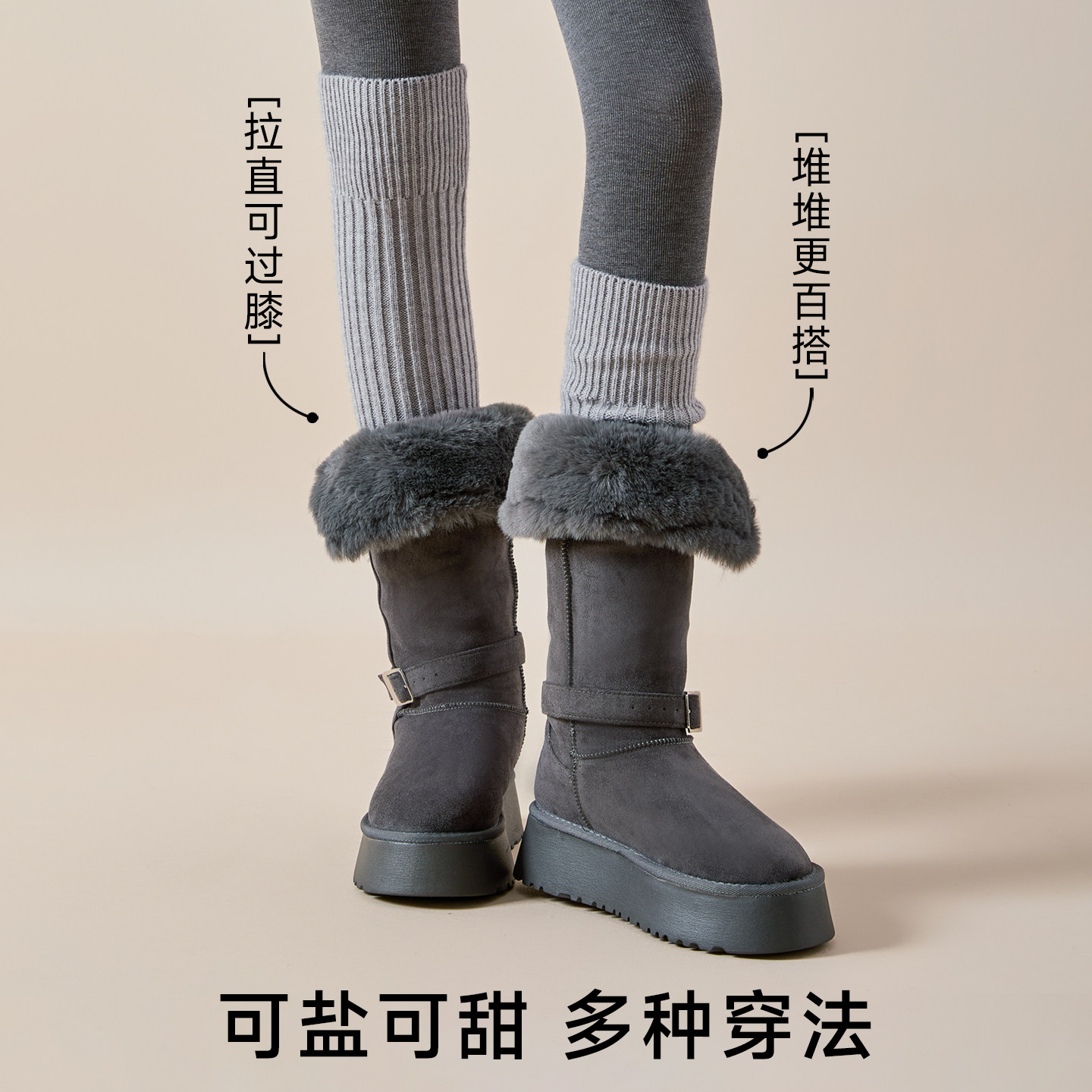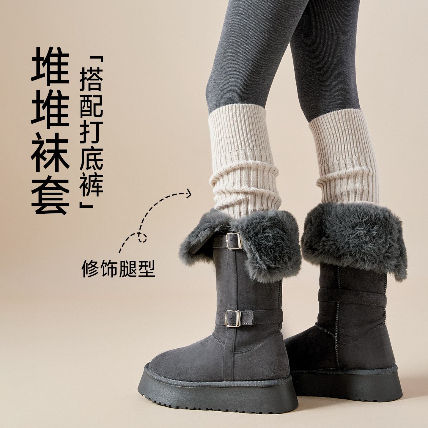 袜套配靴子配打底裤保暖显瘦防下滑堆堆袜子
