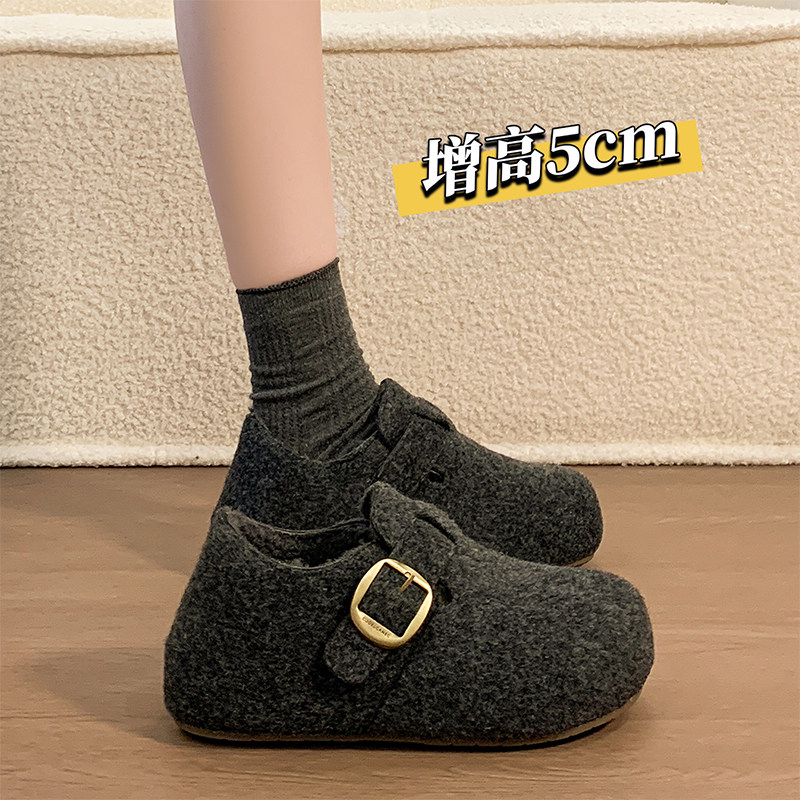 全包厚底勃肯鞋女加绒豆豆鞋2025新款冬季女鞋子爆款博肯棉鞋灰色