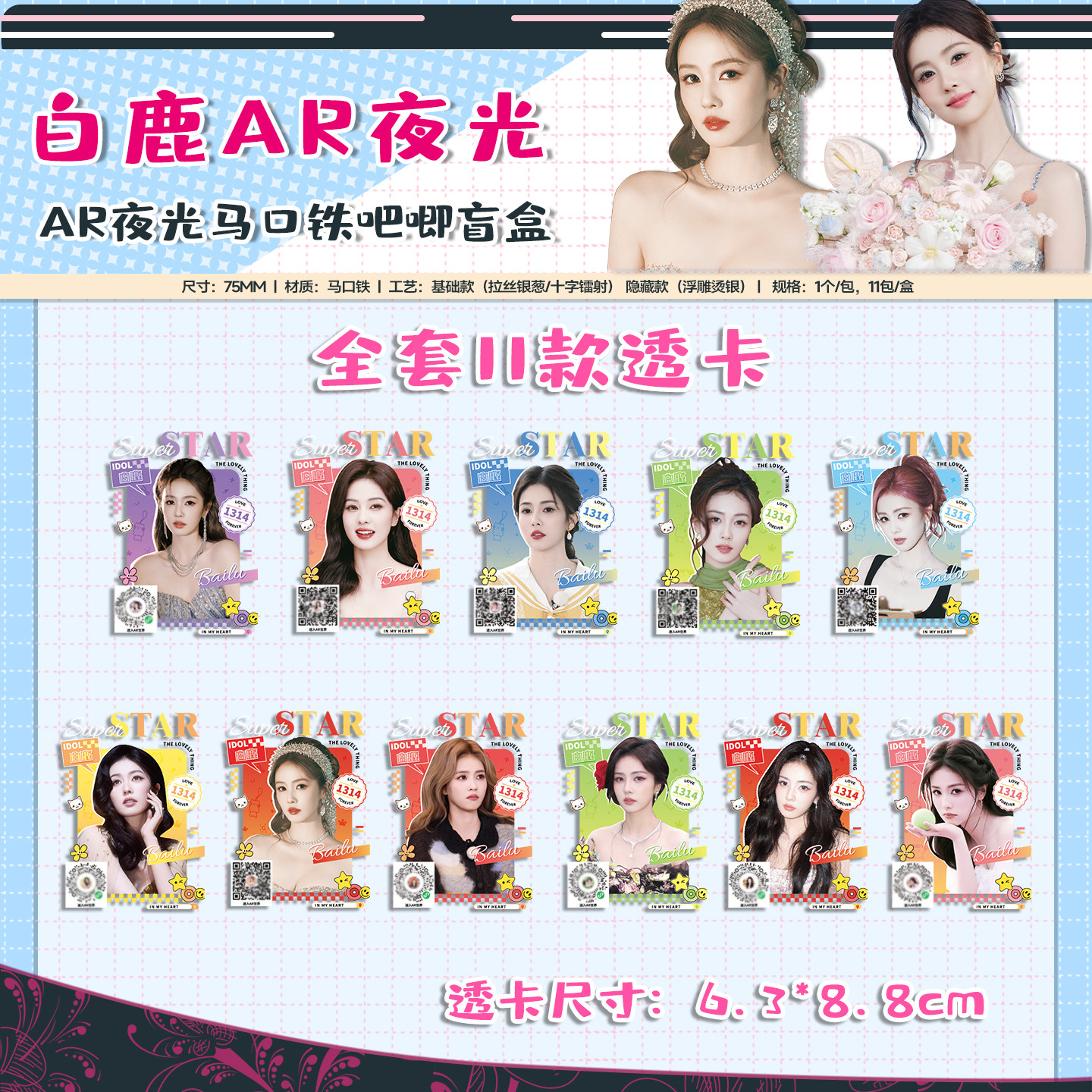白鹿118件福袋小卡AR吧唧盲盒透卡海报镭射票色纸拍立得lomo礼袋