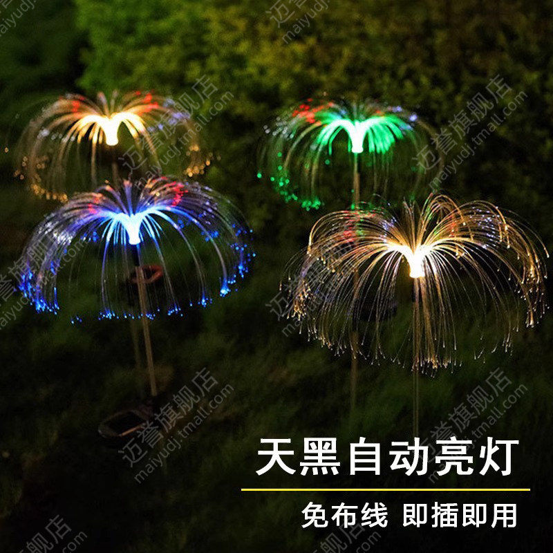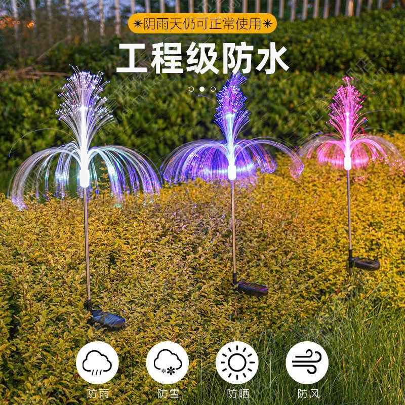 太阳能水母灯七彩变色光纤网红灯户外防水庭院阳台花园地插草坪灯