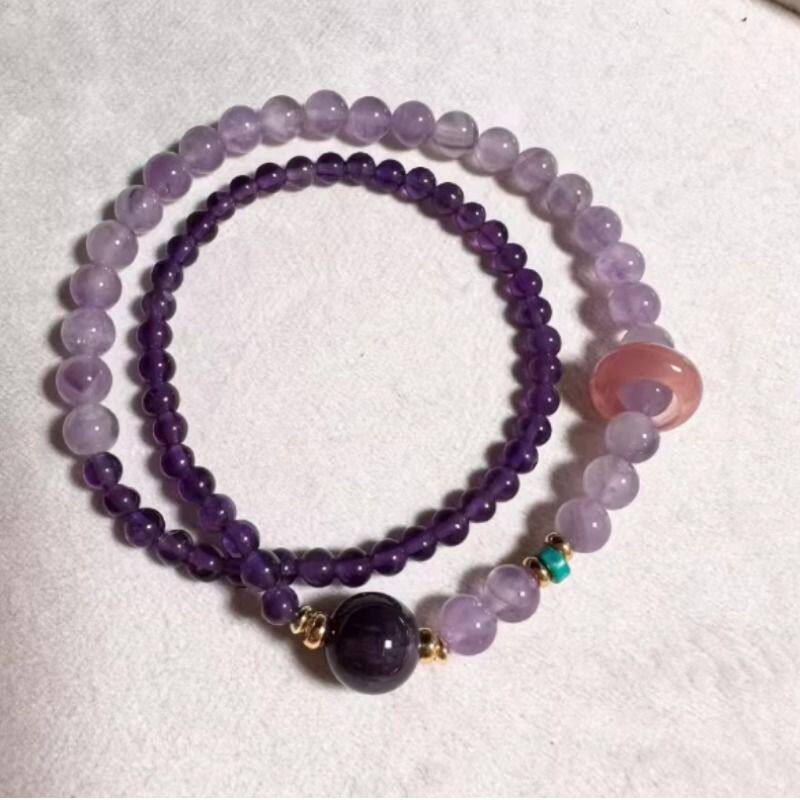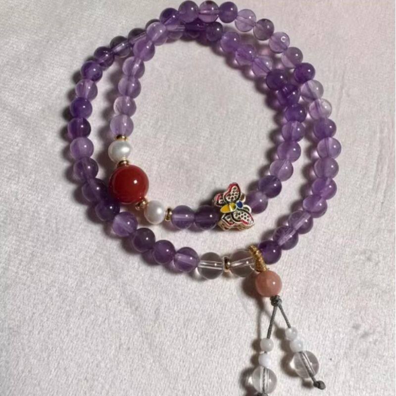 新中式手链天然多宝紫水晶手链九紫离火女国风淡水珍珠双圈手链