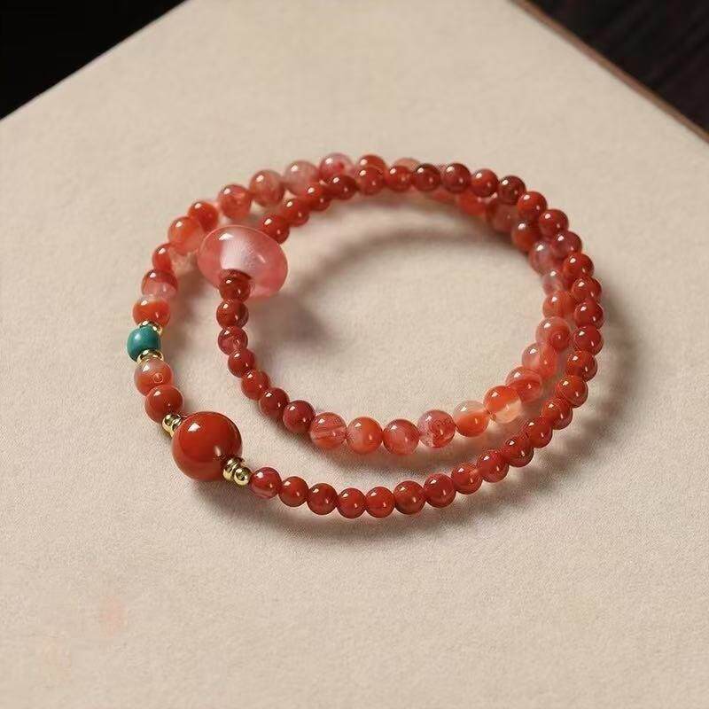 普陀山文创集天然石榴石手串女款全净体官方旗舰三圈水晶手链礼物