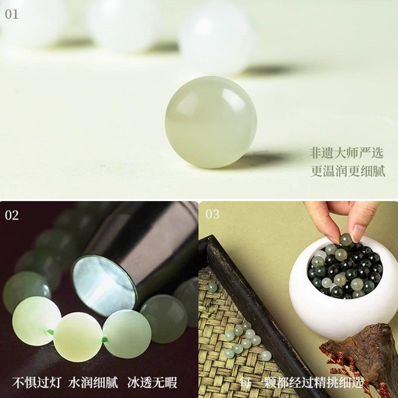 9A天然新疆和田玉散珠晴水单珠深冰晴水手串碧玉珠子羊脂白玉手链
