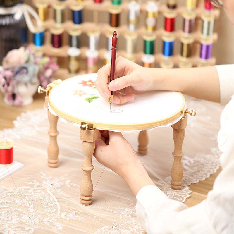 法式绣花架子 台式刺绣支架 实木家用十字绣便携式绣棚固定