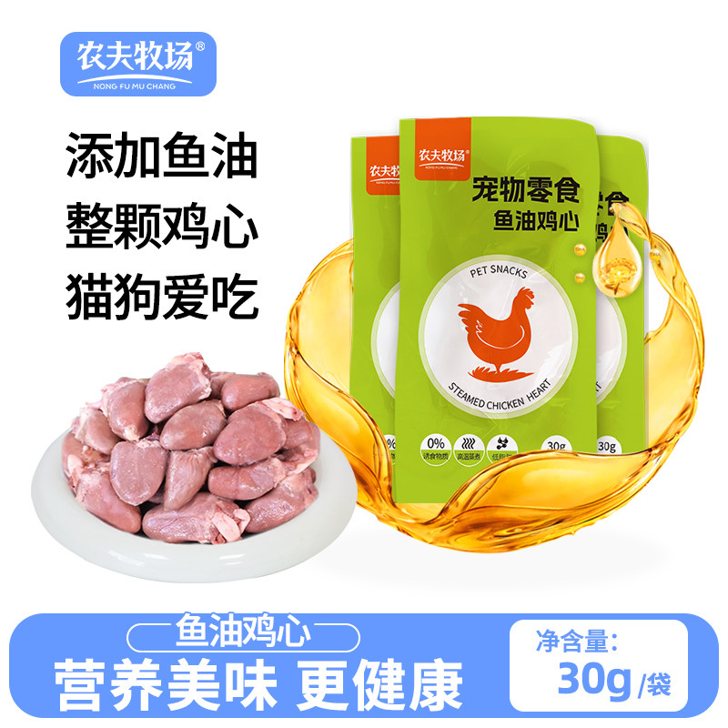 农夫牧场蒸煮鸡心猫咪吃的鱼油宠物零食喂猫鸡肝水煮新鲜食物冷冻