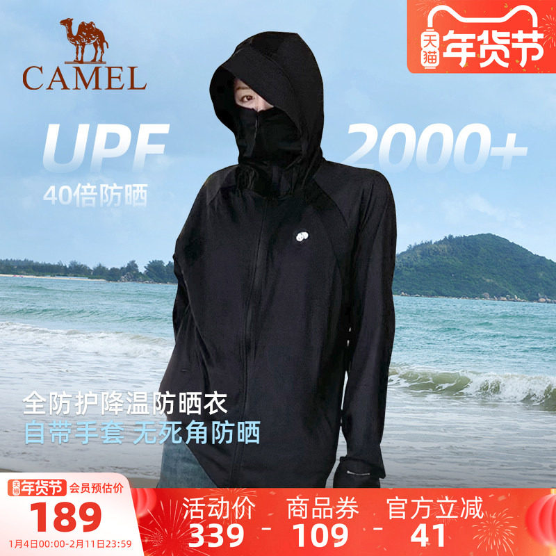 骆驼熊猫系列户外冷白皮防晒衣女款夏原纱透气UPF2000+黑色外套男