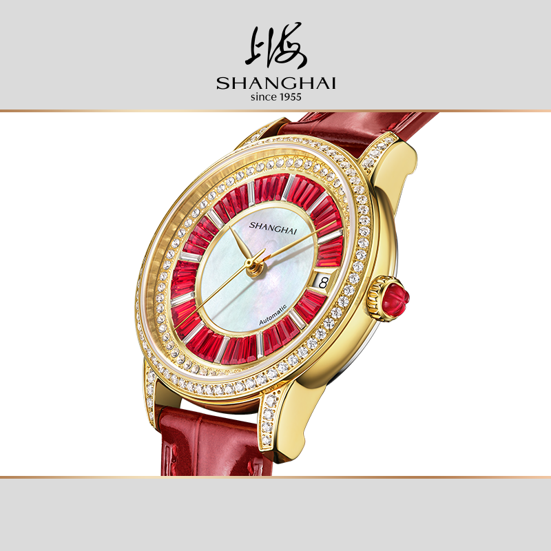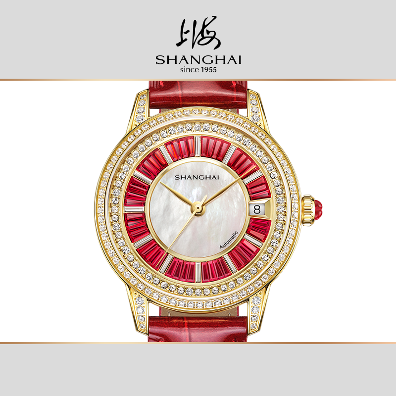 上海手表女款摩登系列水晶吊灯格机械腕表官方旗舰店