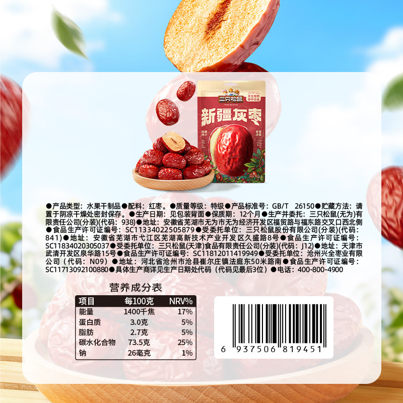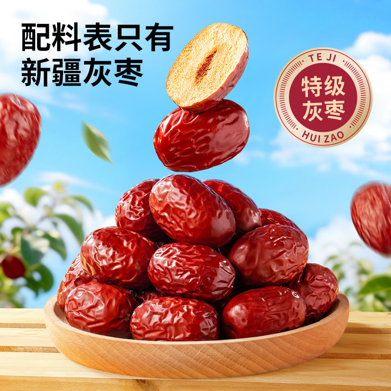 三只松鼠新疆特级灰枣1000g免洗红枣零食大枣干货可夹核桃果干