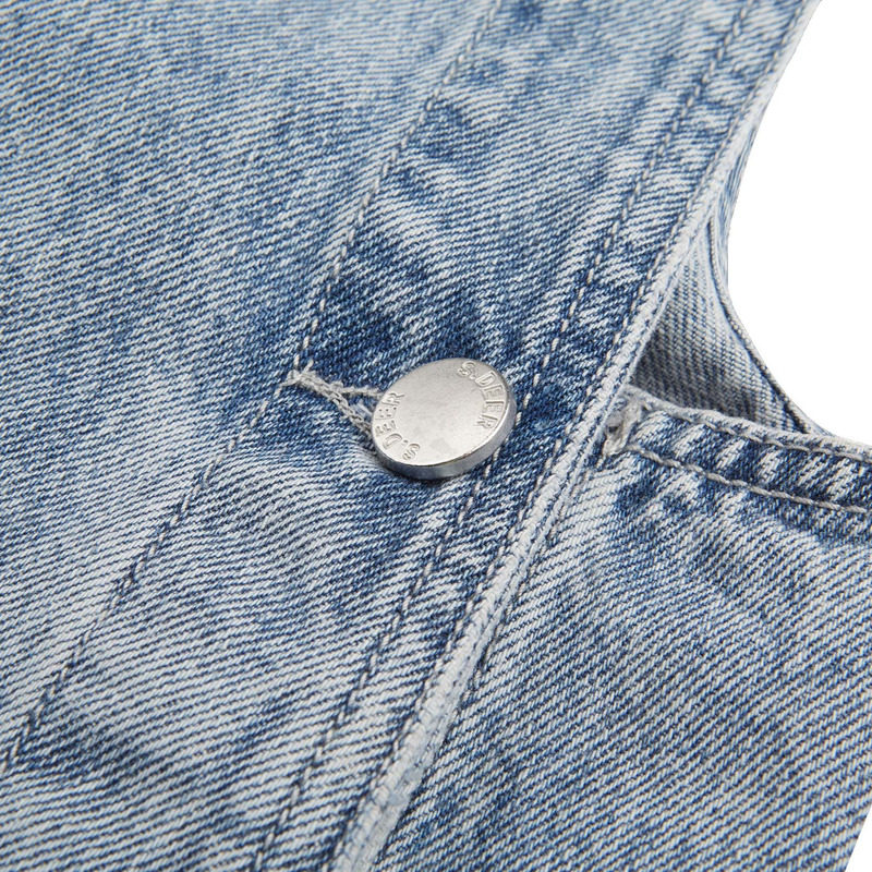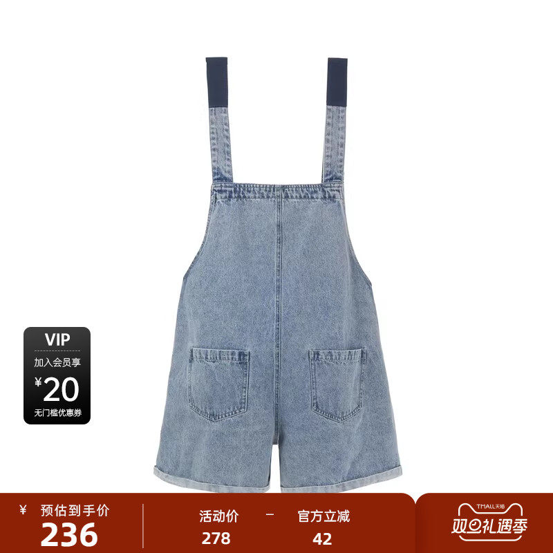 sdeer圣迪奥女装学院风插袋卷边牛仔背带短裤S24281002