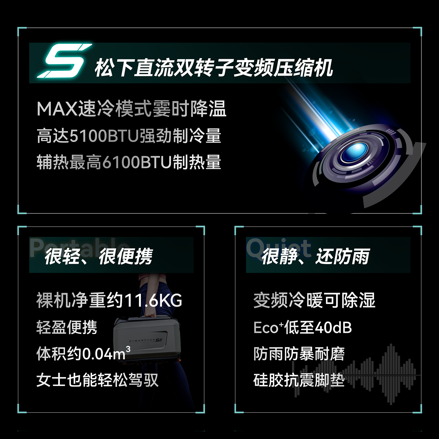 第四空间冷暖变频移动空调便携式车载户外露营帐篷驻车冷热一体机