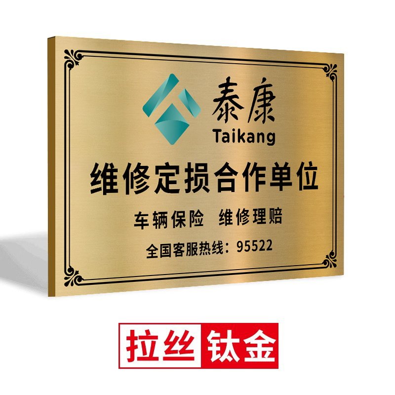 保险公司合作门牌定制定做平安保险广告牌人保太平洋保险定点定损理赔维修汽车汽修厂不锈钢金属铜牌广告牌