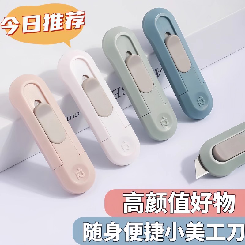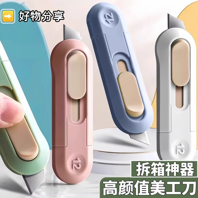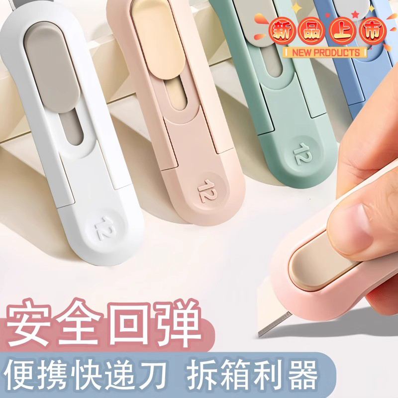 迷你美工刀小号开箱器裁纸刀拆信刀拆快递便携小刀壁纸刀伸缩回弹神器安全不伤手