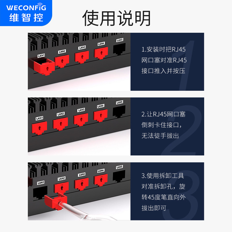维智控RJ45网口锁可拆卸网线安全塞封堵器路由器网络防尘塞