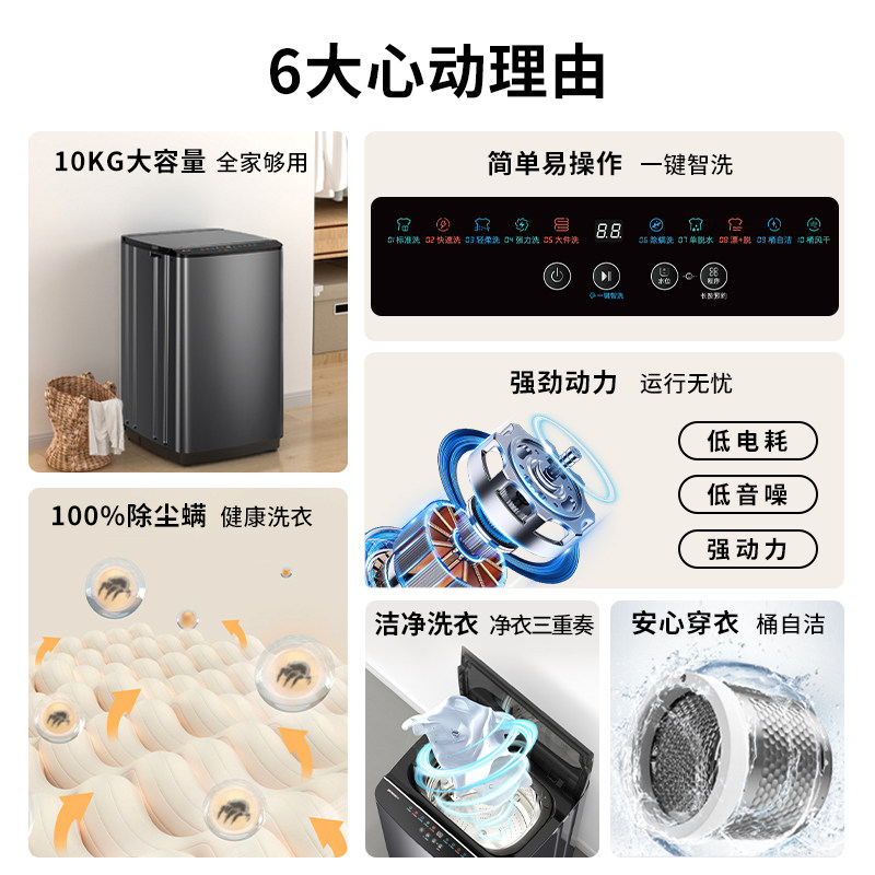 创维10公斤除螨抗菌1级能效T100X全自动波轮洗衣机家用出租房