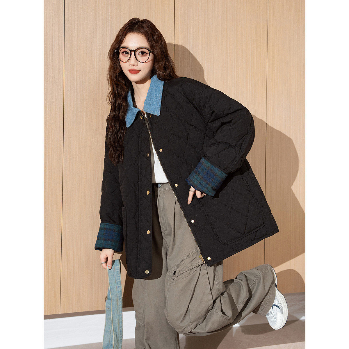 【鞠婧祎同款】鸭鸭2025年冬新款百搭短款女士纯色立领羽绒服外套