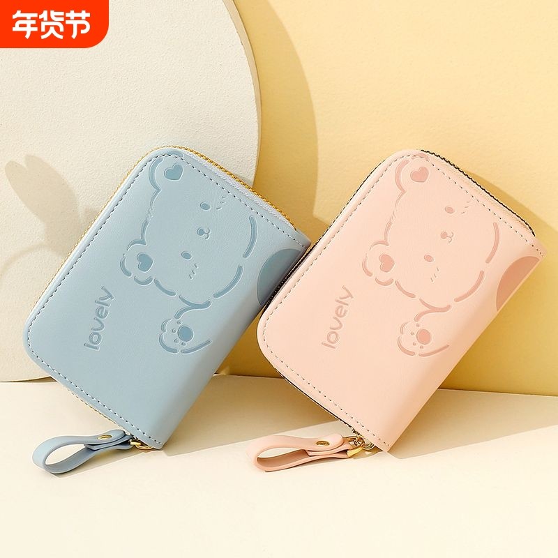新款可爱熊熊卡通卡包女迷你多卡位卡套学生拉链零钱包潮防消磁