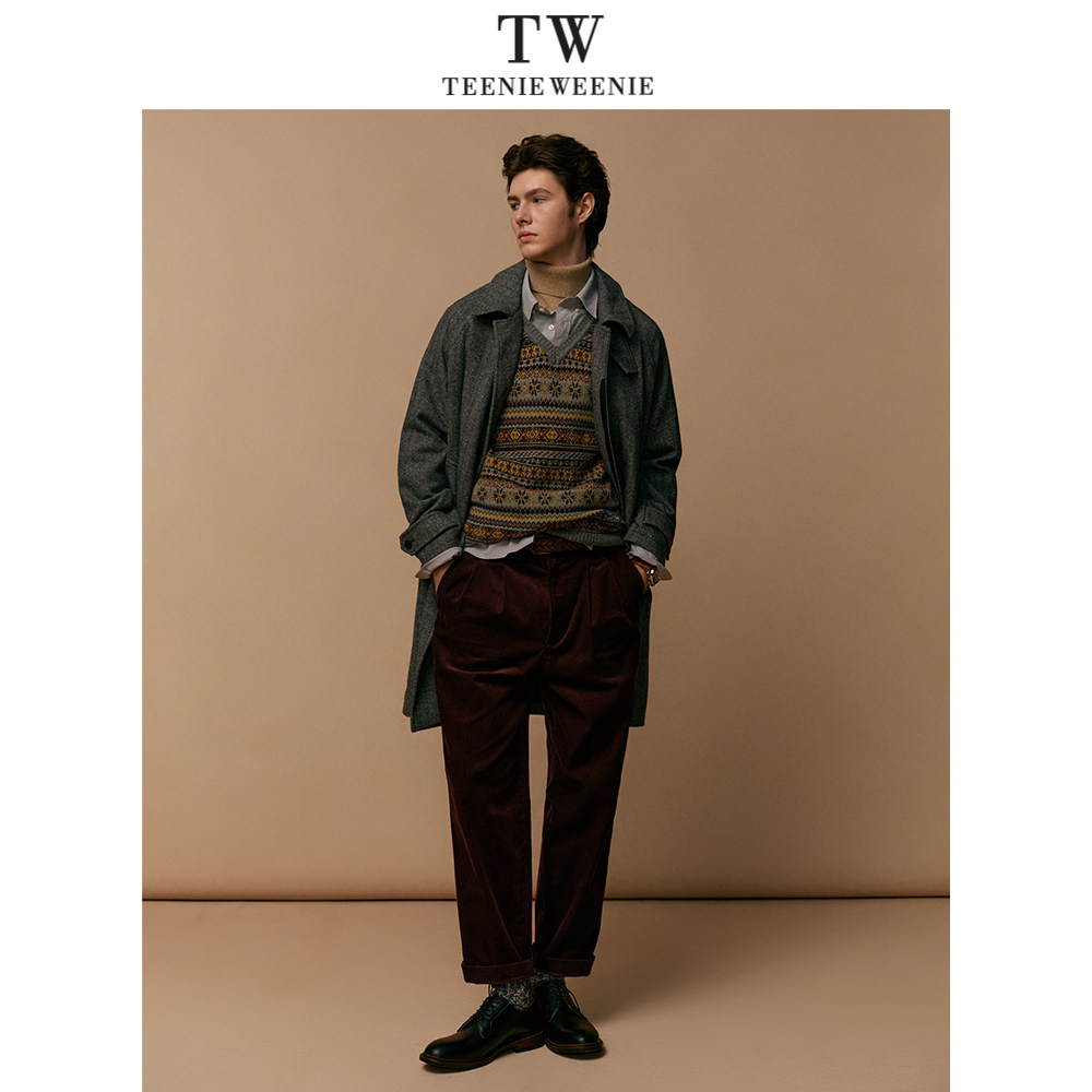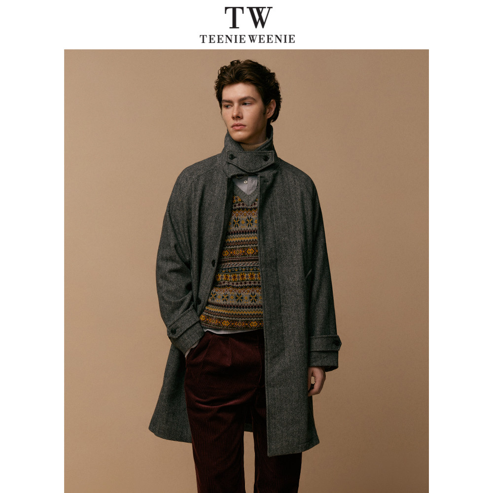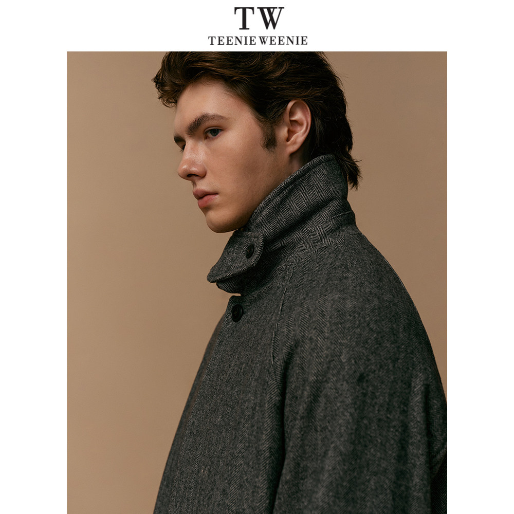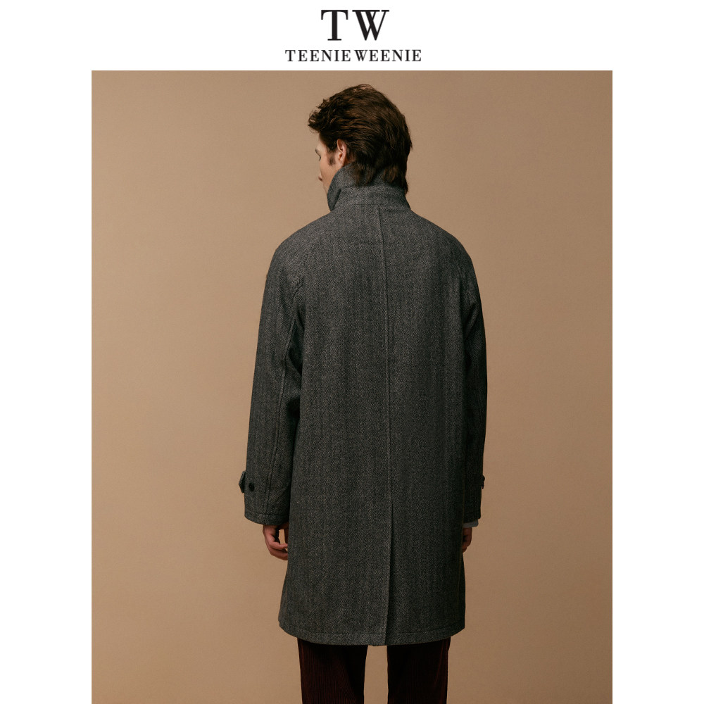 TeenieWeenie小熊男装简约时尚毛呢大衣春季人字纹中长款羊毛外套