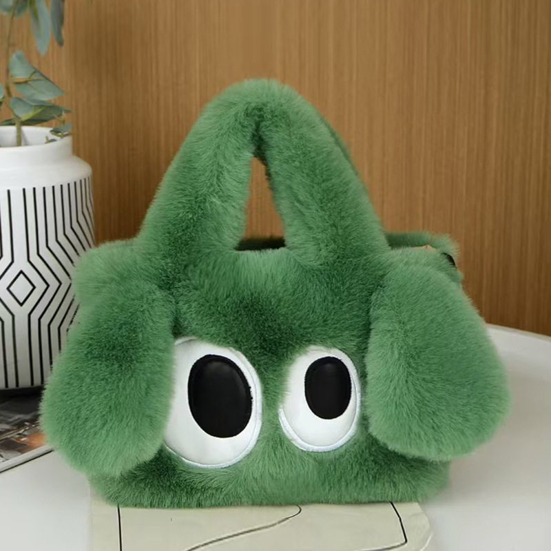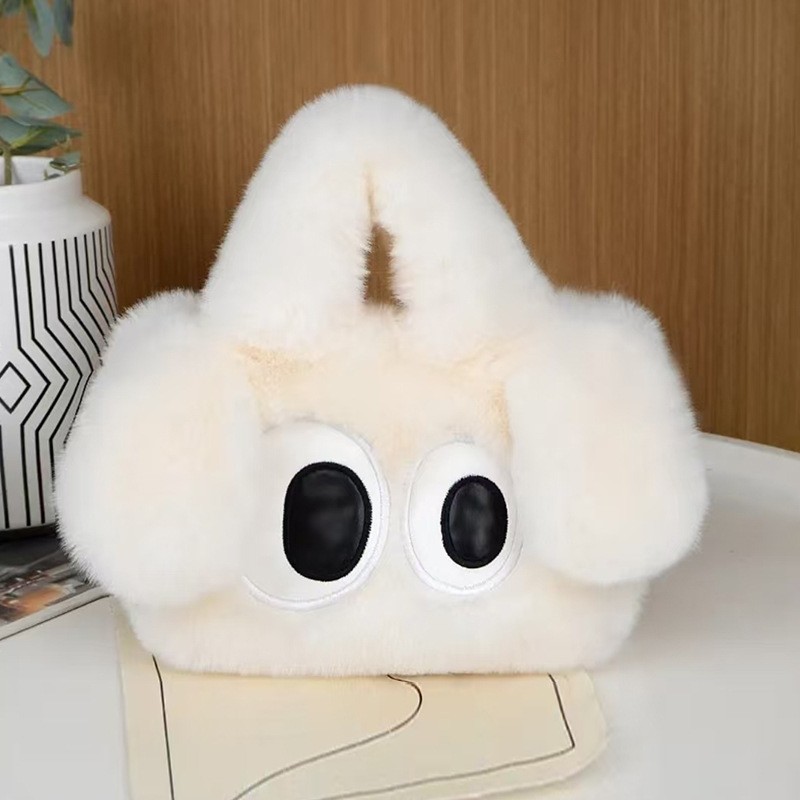 秋冬新款可爱大眼狗包毛绒包包女士手拎包斜挎链条包单肩包手提