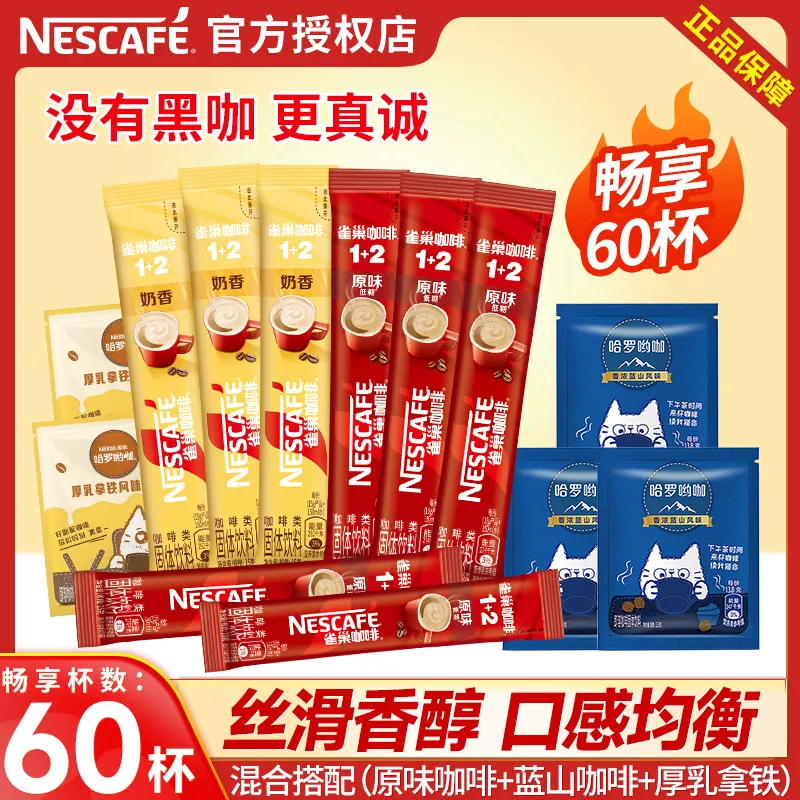 热卖雀巢咖啡12奶香厚乳拿铁醇品速溶咖啡组合提神盒装特浓原味