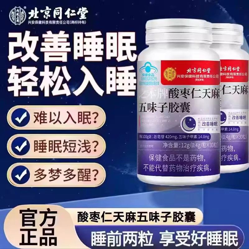 北京同仁堂褪黑素安瓶助眠酸枣仁天麻五味子胶囊官方正品旗舰店