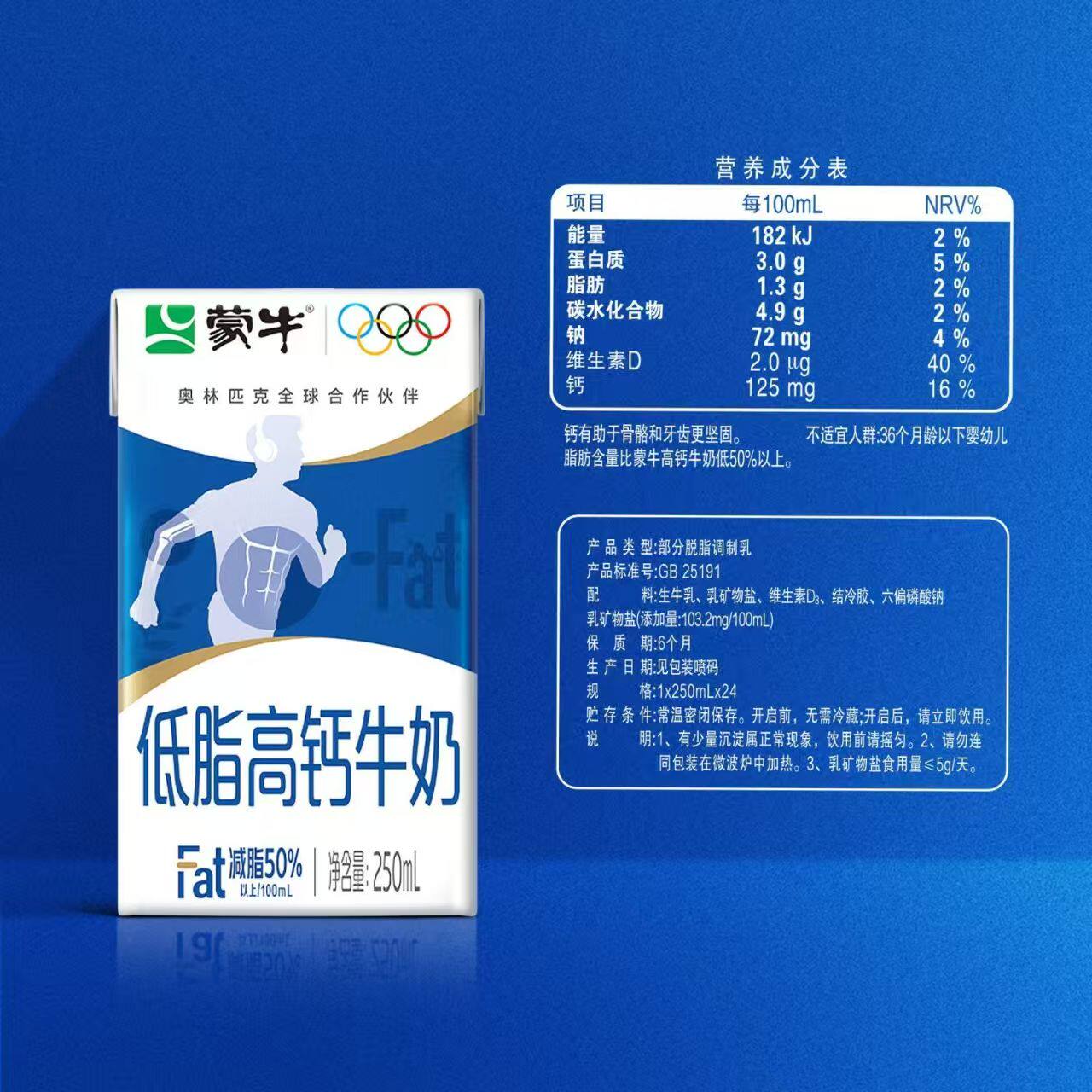 【1月产】产蒙牛低脂高钙纯牛奶250mL×24盒 学生营养健康早餐